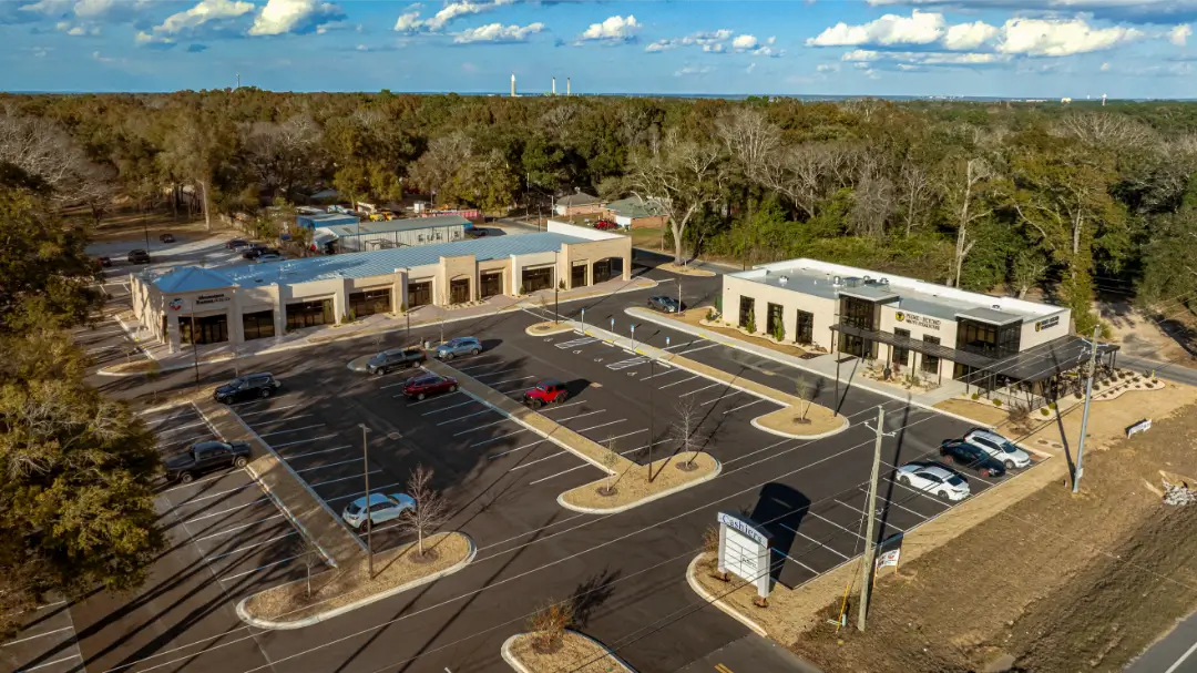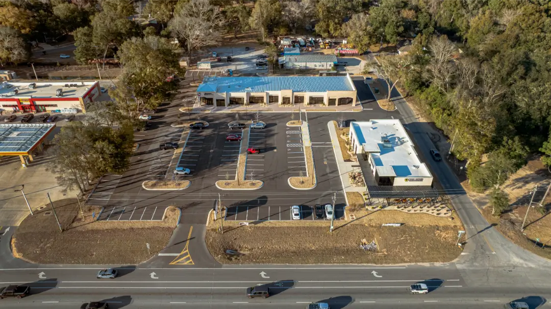 The building was delivered as a shell, providing flexibility for future retail and commercial tenants. Site development included paved parking for approximately 100 vehicles, along with landscaping, irrigation, and stormwater retention infrastructure supporting the overall property.