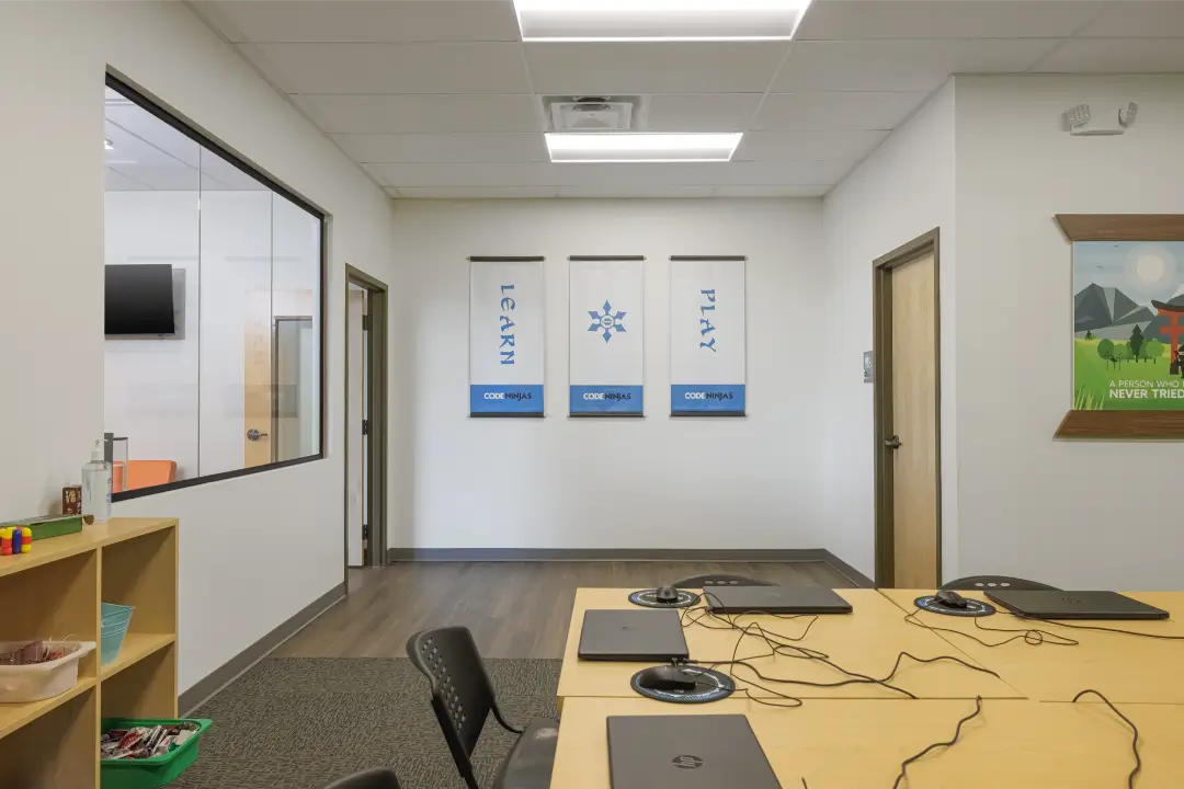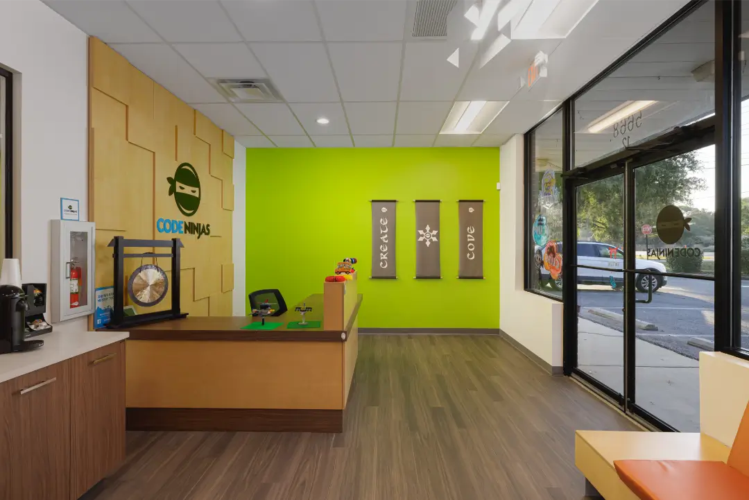 Vision Construction completed the interior buildout for Code Ninjas’ newest location in the Florida Panhandle, a repeat client after successfully building their first location in Pensacola Florida. Code Ninjas is a for profit educational organization that teaches kids computer coding through fun, hands on learning experiences. As the largest kids coding franchise in the world with over 400 locations across three countries, Code Ninjas continues to expand its footprint, and we are proud to help bring their creative learning spaces to life in both Pensacola and Gulf Breeze.